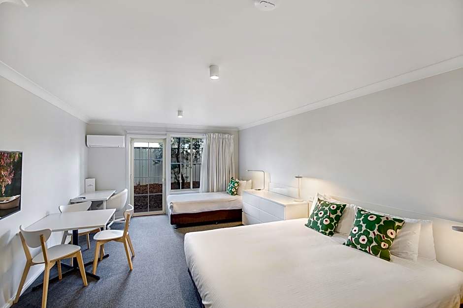 This Deluxe twin room has a 43-inch HD LED TV with cable channels, a kitchenette, split-system air-conditioning, mini-bar and private bathroom. Fully renovated in May 2018, this large room also offers a small dining table.