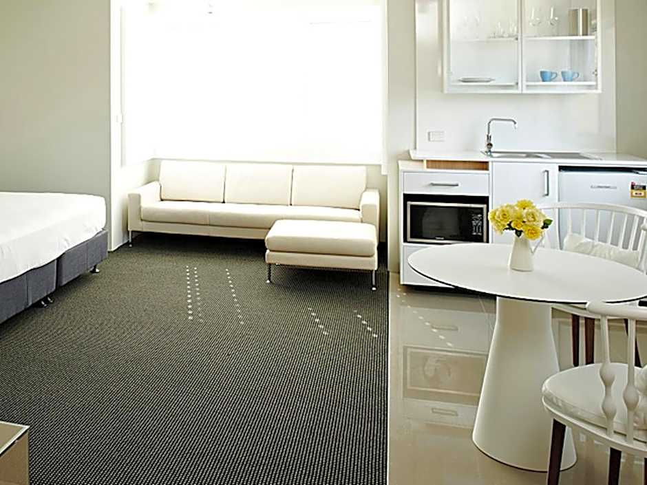 This Deluxe King studio has a 43-inch HD LED TV with cable channels, a kitchenette, leather lounge, split-system air-conditioning, mini-bar and private bathroom. Fully renovated in May 2018, this large room also offers a small dining table.